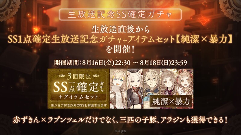 SS1点確定生放送記念ガチャ+アイテムセット【純潔×暴力】開催
