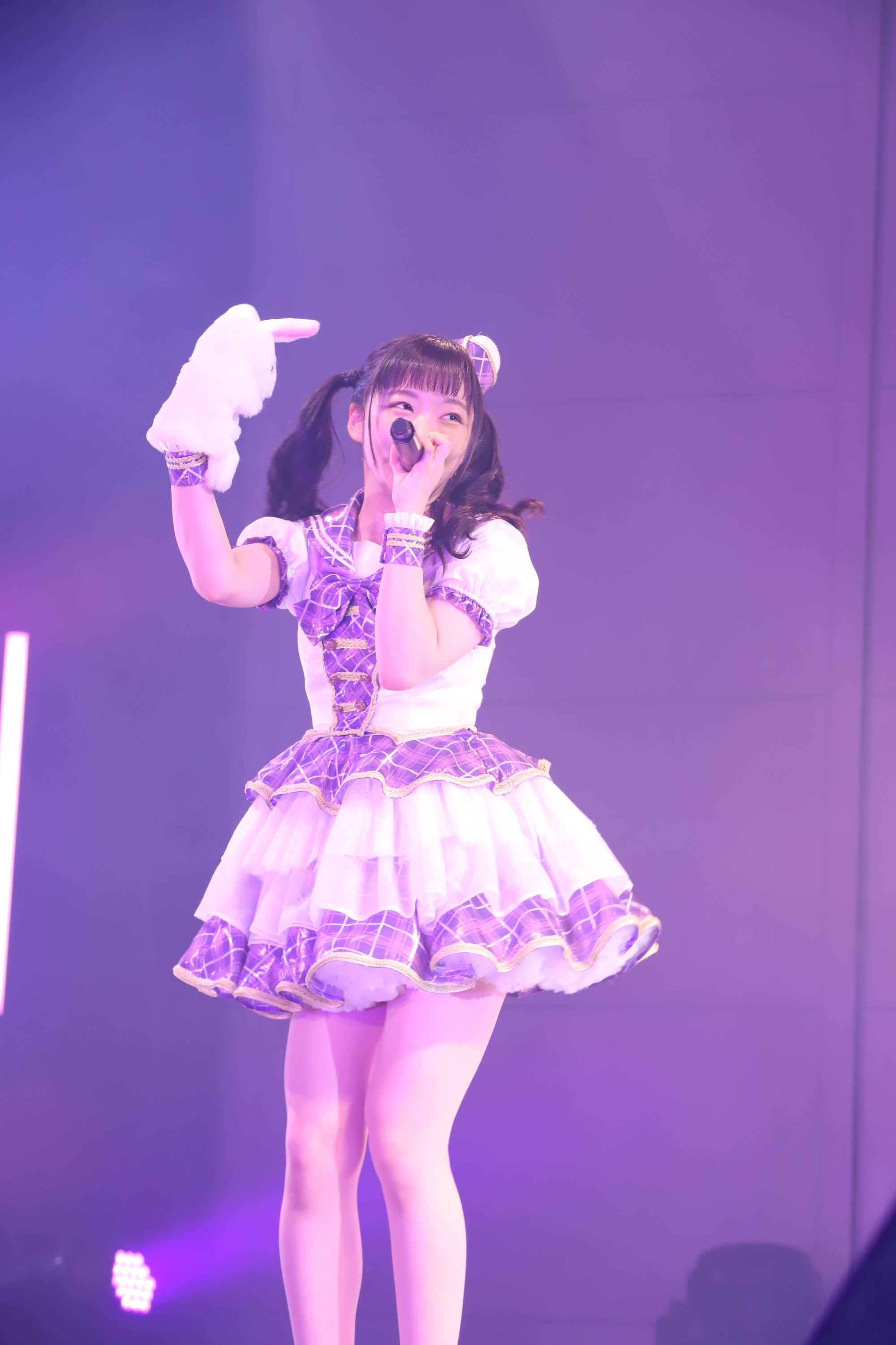 ソロコーナー最後を務めたのは、ユア役の園山だ。暗くなったステージに光が照らし出されると、右手にウサギのパペット(キリマンジャロくん)をはめて登場し、とびきりキュートでスパイシーな「Welcome Wonder Land」を披露。サビの「あなたは私に釘付け」では、ウサギに向き合って言い聞かせるような仕草も見せ、曲中ではゲーム内のアタックボイスを差し込むなどユアらしい小悪魔感を醸し出していた。ユアがメインとなる楽曲は客席からのコールのボリュームも大きく、園山も負けじと「抱きしめてー!」と叫び、ワンダーランドの空間をつくりあげた。