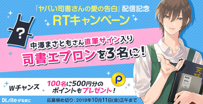 プレゼント:中澤まさとも直筆サイン入りエプロン 3名、500円分のDLsiteポイント 100名