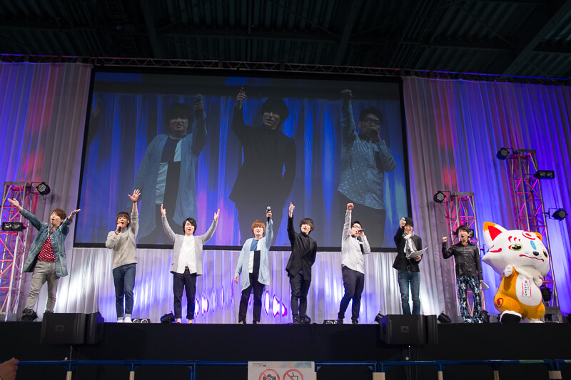 (写真は左より木村良平、濱健人、榎木淳弥、市来光弘、増田俊樹、新垣樽助、でじたろう、花澤雄太、こんのすけ)