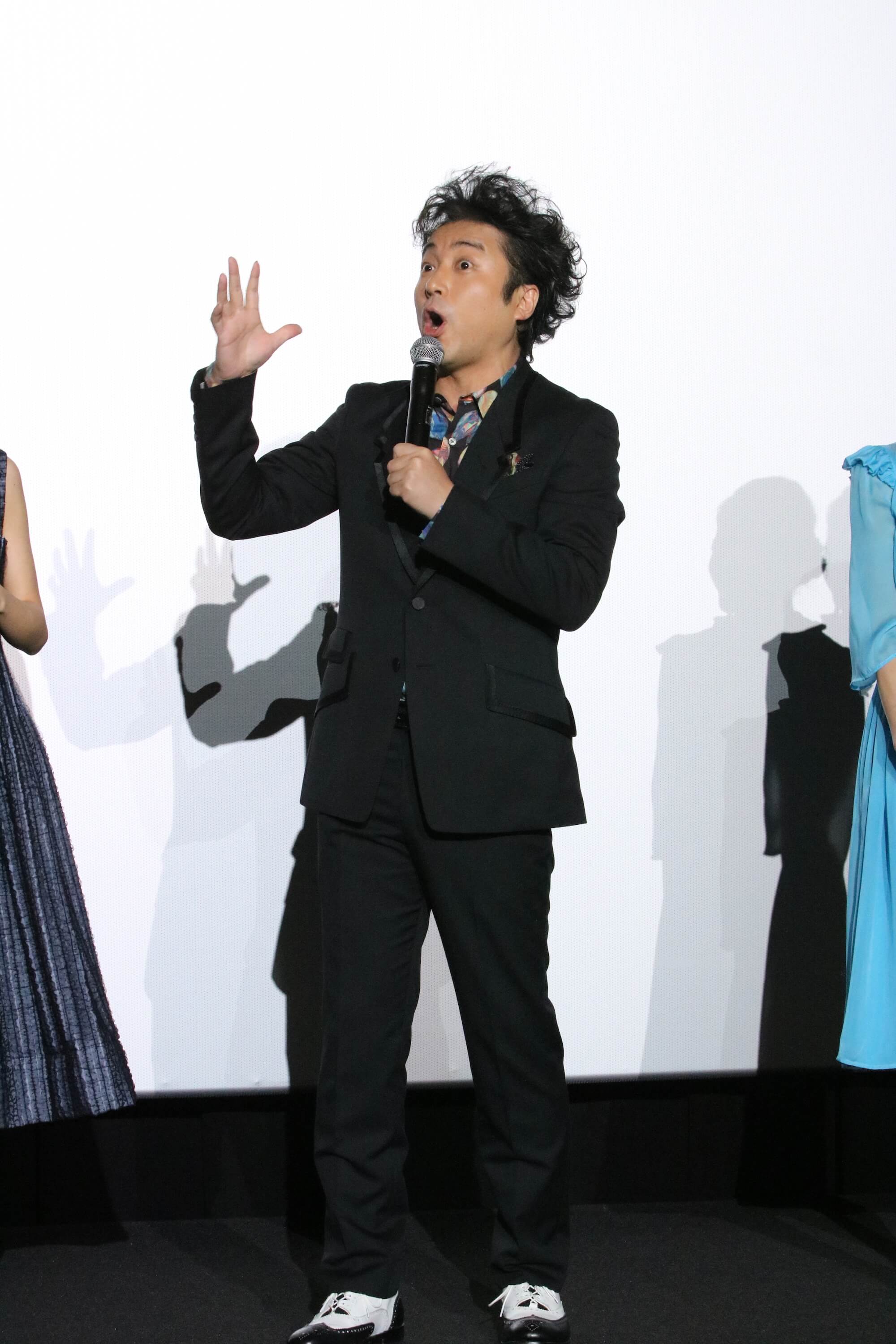 実はこの舞台挨拶で初めてキャスト陣と対面したという宮野は「ハッピーな舞台挨拶で素敵ですね。皆さん自由に喋るので(笑)」と明るい雰囲気の現場を歓迎。劇中で披露した、滑舌が悪いことで有名なエルビス・プレスリーのモノマネについては、「何を喋っているかわからないモノマネをしたら、OKをもらって、こうして公開されたんです(笑)」と舞台裏を明かした。また、本作を劇場でも観たいと述べたNON STYLE・石田に対して、