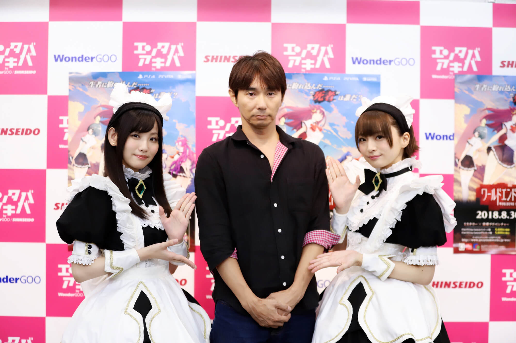 8月30日(木)に発売されたばかりのPS4/Vita/Nintendo Switch用ソフト『ワールドエンド・シンドローム』のリリース直前イベントが、8月26日(日)、東京・エンタバアキバ by WonderGOO / SHINSEIDOにて開催された。このイベントには、メインヒロインのキャラクターボイスを務める楠瀬舞美役の東城日沙子、甘奈未海役の井澤詩織、そして金沢十三男ディレクターが登場した。