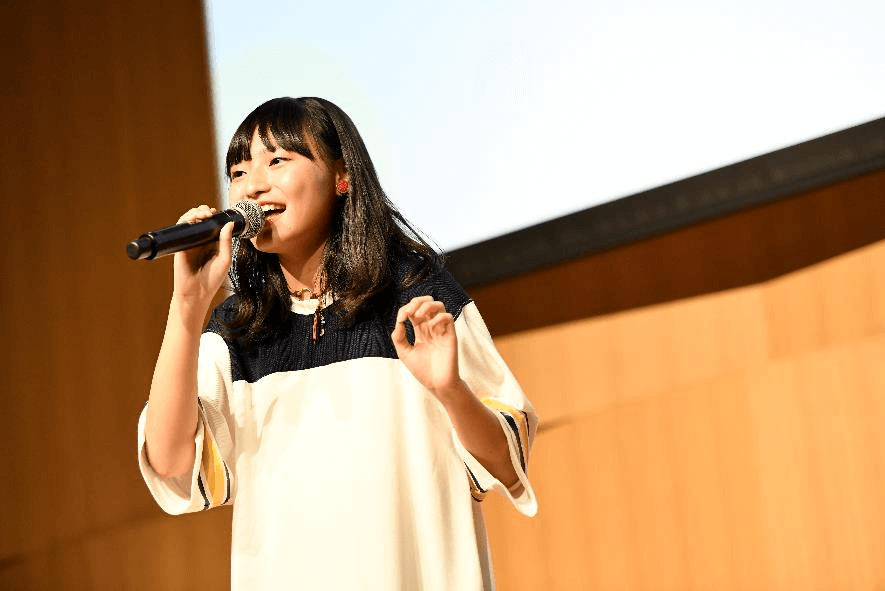 アフレコ実践が終わると、二度目のライブパートへ。今度は『BATON=RELAY』のオリジナル曲を披露した。まずは矢野と白河が初公開となる「四月のDreams come true」を歌唱。本曲はポジティブで明るい、思わず横ノリしたくなるさわやかな楽曲。ふたりは終始笑顔でこの曲を歌い上げた。