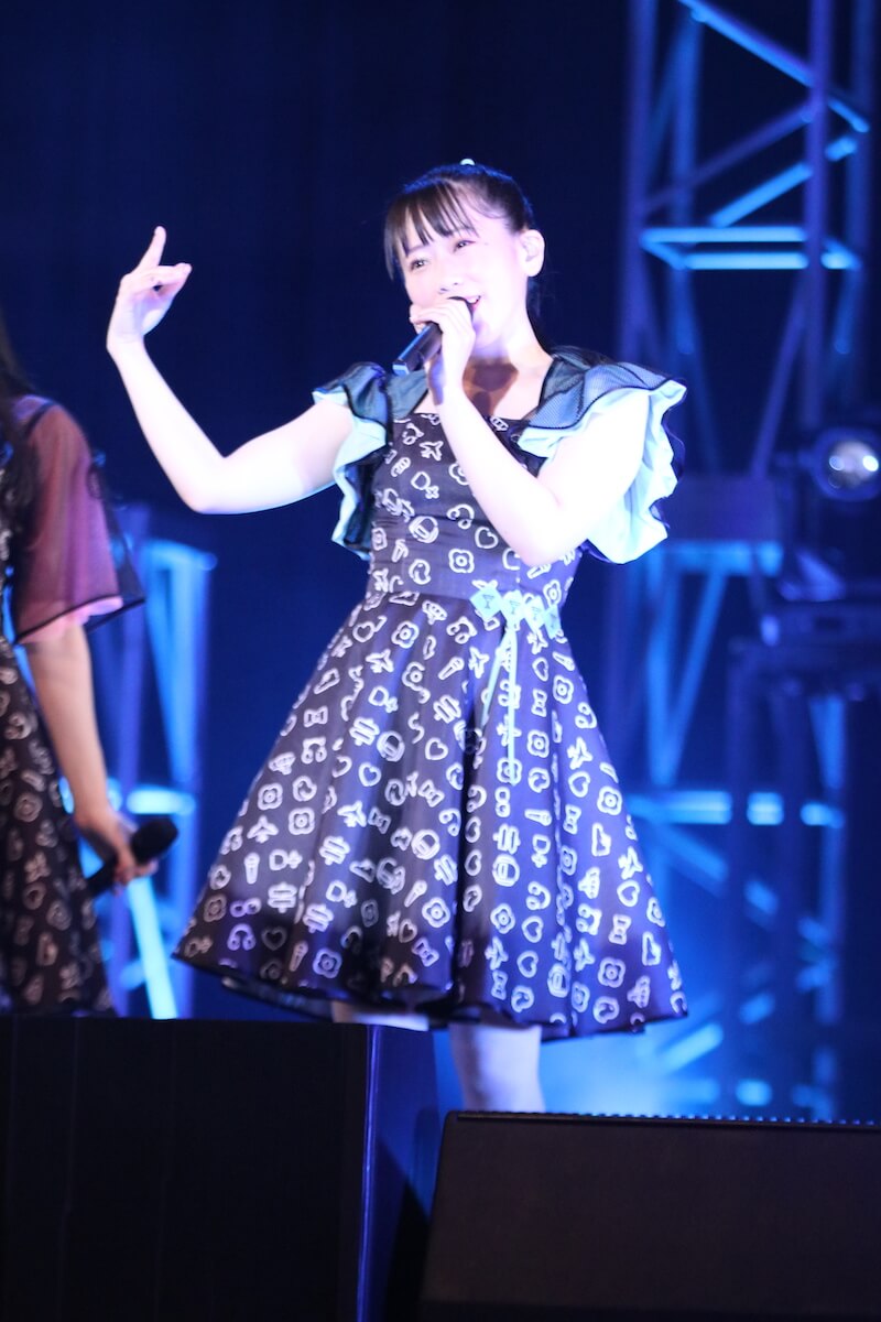 そして、聴いている人皆の気持ちを高めてくれるような新曲「SCENE B-2:上々だ」と、「パジャマdeパーティー」を続けざまに披露していく。ここで舞台が暗転すると、彼女たちの心の内を明かすかのようなモノローグとともに映像が流れ出し、雰囲気が一変。暗闇の中から、黒いパーカーに着替えたメンバーが登場すると、ダンサブルナンバー「Domestic Force!!」のイントロが。ここまでの、華やかでかわいらしい振り付けやライティングから一変し、さながらダンスユニットのような激しい動きとともに力強い歌声が響き渡る。