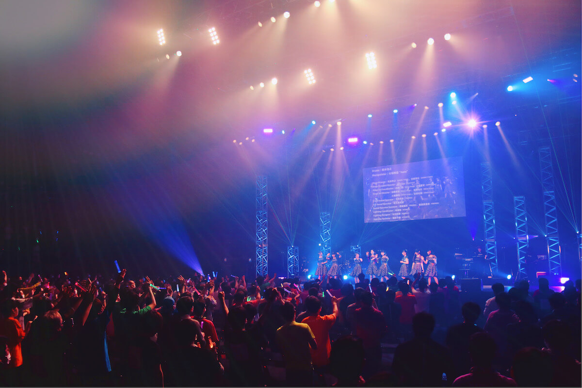 その期待に応えるプレッシャーを背負いながら、イントロに合わせてステージ中央の階段から姿を表した8人は、早速生バンドが奏でるリズムに乗せてダンスのステップを踏む。そして、「かいかいせんげん!」から「はじめてのかくめい!」とお馴染みの楽曲からライブをスタートさせると、会場の熱が一気に上がる。それもそのはず、生バンドの音を上回るほどの彼女たちの声量と伸びが素晴らしく、この発声を踊りながら実現させているパフォーマンス力の向上が見て取れたからだ。