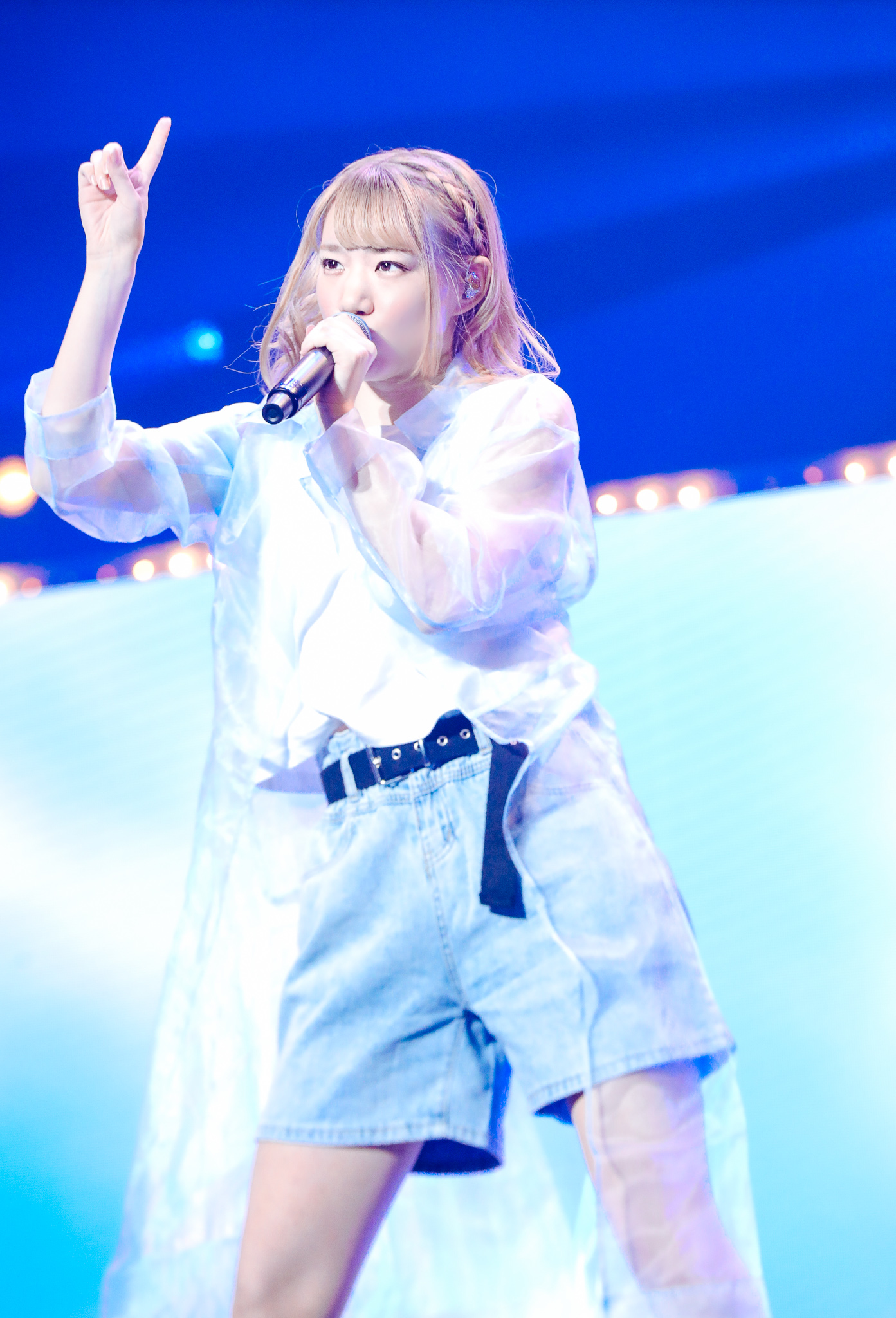 「続いての曲は、とってもかわいいこちらの曲をお聴きください」と曲終わりに紹介して歌い始めた「CUTE♡CUTE♡CUTE」によって、曲・ダンス・表情など全てのかわいさをステージに敷き詰めて、大きな円陣を組んでからスタートさせる「our song」へ突入。1stライブの際には大モニターに歌詞が表示されており、マネージャーとともに合唱するような元気な曲であったが、今回はご時世的な状況もあり客席からサイリウムを大きく振ることでマネージャー陣も楽曲に参加していた。